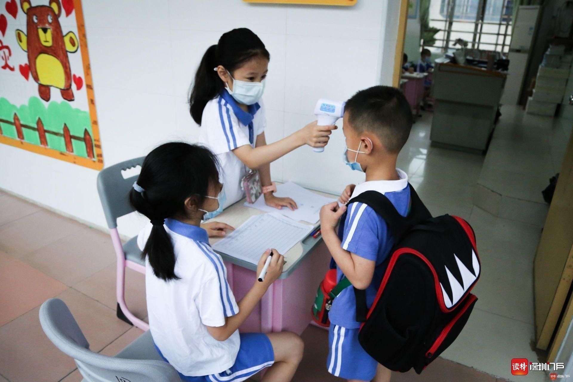 5月18日,益田小學(xué)全體師生回歸久違的校園,重啟新的校園生活。伴隨著煦風(fēng)暖陽,朝氣蓬勃的同學(xué)們?cè)诶蠋焸?、家長義工們的親切笑容里,于校門外有序排隊(duì),等待測溫入校。在老師們的指引下,佩戴口罩的同學(xué)們根據(jù)腳下的小腳丫標(biāo)志,保持1米距離,按要求消毒洗手,井然有序地步入校園。(讀特記者韓文嘉)
