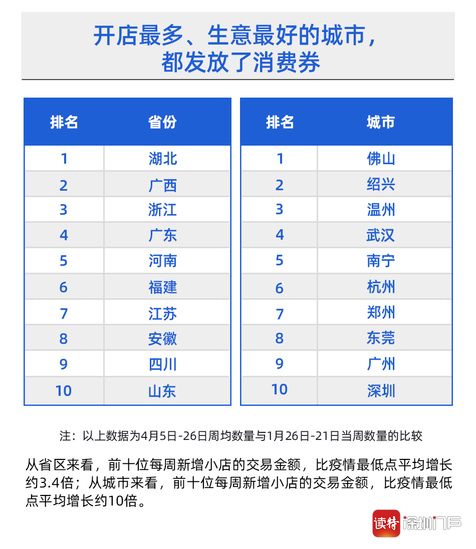 值得注意的是,排名前十的省份及城市,絕大多數(shù)都通過支付寶發(fā)放了消費(fèi)券。4月份以來(lái),佛山、珠海、東莞、清遠(yuǎn)、深圳羅湖和龍崗區(qū)陸續(xù)通過支付寶等平臺(tái)發(fā)放消費(fèi)券,廣東發(fā)放消費(fèi)券總額已經(jīng)超過10億元,成為全國(guó)發(fā)放消費(fèi)券最多的省份之一。尤其是上述排名第一的佛山,在市區(qū)兩級(jí)消費(fèi)券刺激下,線下餐飲、美容美發(fā)等行業(yè)迎來(lái)一波消費(fèi)熱潮。阿里本地生活數(shù)據(jù)顯示,自佛山消費(fèi)券發(fā)布后,佛山線下餐飲門店新開業(yè)環(huán)比增幅超過35%,餐飲類消費(fèi)訂單量環(huán)比增幅也超過了152%,美容美發(fā)訂單增長(zhǎng)了350%以上。