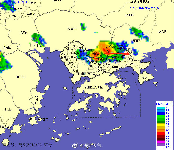 14時(shí)15分:【深圳市分區(qū)雷電預(yù)警】深圳市氣象臺(tái)于2020年05月19日14時(shí)10分在龍崗區(qū),龍華區(qū)和坪山區(qū)發(fā)布雷電預(yù)警,預(yù)計(jì)30分鐘內(nèi)上述區(qū)域?qū)⑹芾纂娪绊懀凑辗烙A(yù)案停止戶外易燃易爆危險(xiǎn)作業(yè),并加強(qiáng)?;瘓?chǎng)所安全管理。