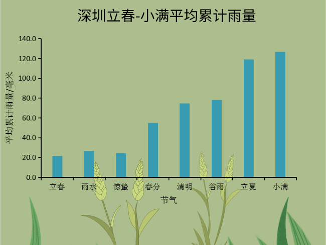 小滿節(jié)氣,除了氣溫不斷地攀升,雨水也逐漸增多。伴隨著南海夏季風(fēng)的爆發(fā),所謂小滿大滿,江河水滿,意思是小滿節(jié)氣強降水過程頻繁,間隔時間短,經(jīng)常一波接一波。進入小滿節(jié)氣后,深圳也進入了一年一度的“龍舟水”時期。此時南方的暖濕氣流活躍,與北方南下的冷空氣交匯,往往會出現(xiàn)持續(xù)大范圍的強降水。氣象統(tǒng)計數(shù)據(jù)顯示,小滿節(jié)氣后15天深圳平均累計雨量為126.9毫米,比之前的立夏時節(jié)降水更加豐沛。