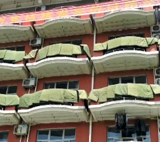 疫情期間停課,軍校生宿舍被子“閑置”了4個月,“豆腐塊”變“腐乳”。近期,返校在即,留在學校的學生把每個宿舍的被子拿出來晾。
