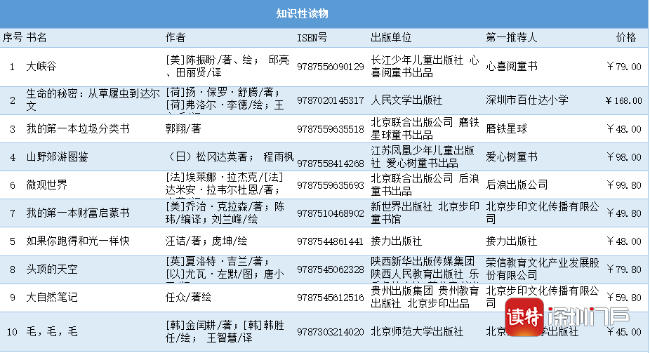 見圳客戶端·深圳新聞網(wǎng)2020年6月1日訊(記者 馬璇 通訊員 周知)第七屆“我最喜愛的童書”閱讀推廣活動自4月23日啟幕以來,全國34家單位強(qiáng)強(qiáng)聯(lián)手,共同打造國內(nèi)具公信力、影響力的少兒閱讀推廣活動。經(jīng)過專家學(xué)者推選、網(wǎng)絡(luò)投票等環(huán)節(jié),30強(qiáng)圖書于6月1日火熱出爐。