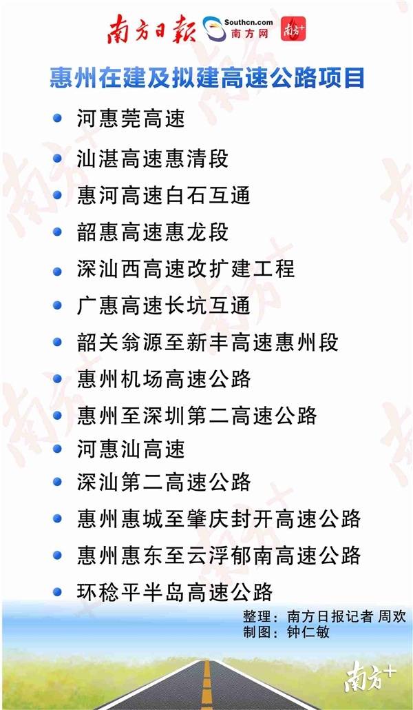今年惠州市政府工作報告明確,將建成河惠莞高速惠州段、汕湛高速惠清段、惠河高速白石互通,加快建設韶惠高速惠龍段、深汕西高速改擴建工程、廣惠高速長坑互通,啟動環(huán)稔平半島高速公路建設。同時,將加快惠州千萬級干線機場規(guī)劃建設。