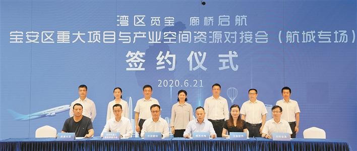 寶安區(qū)重大產(chǎn)業(yè)項(xiàng)目與產(chǎn)業(yè)空間資源對接會·航城專場簽約儀式現(xiàn)場。