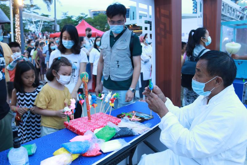 糖畫、捏面人、穿漢服……當(dāng)晚的海上世界廣場(chǎng)熱鬧祥和,約300人次中外居民歡聚一起,互致美好祝福,在感受中國(guó)傳統(tǒng)文化當(dāng)中共度端午佳節(jié)。