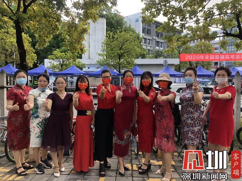 “以夢(mèng)為馬,不負(fù)韶華,旗開得勝,馬到成功?!睂W(xué)生家長(zhǎng)們身穿旗袍為孩子吶喊助威。
