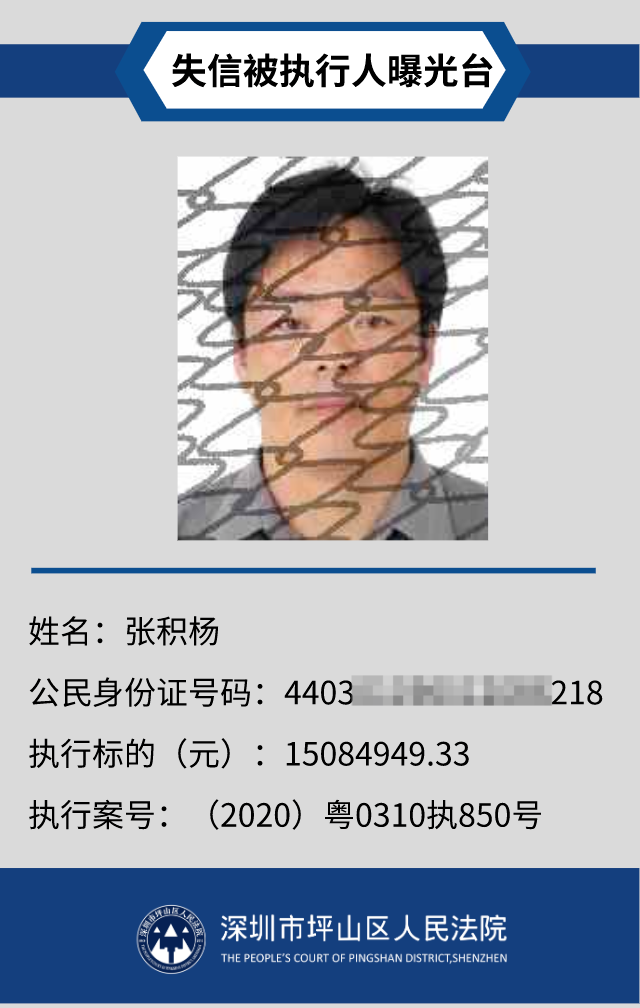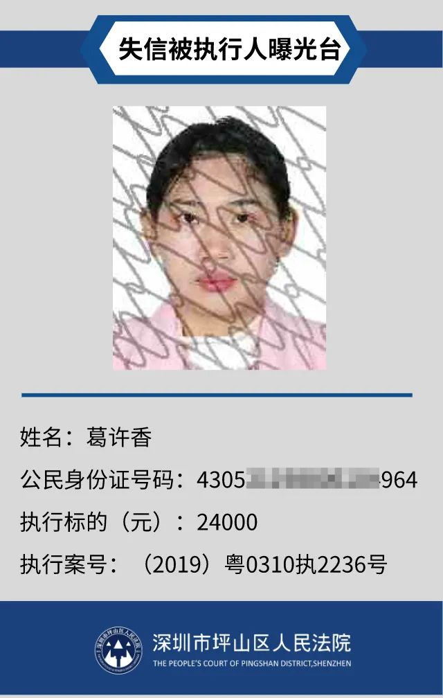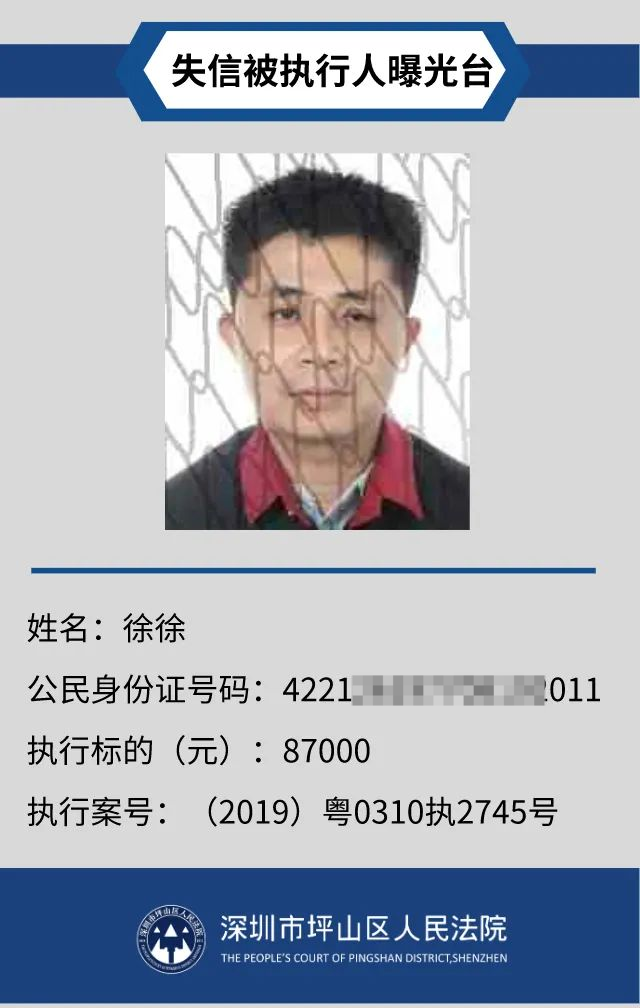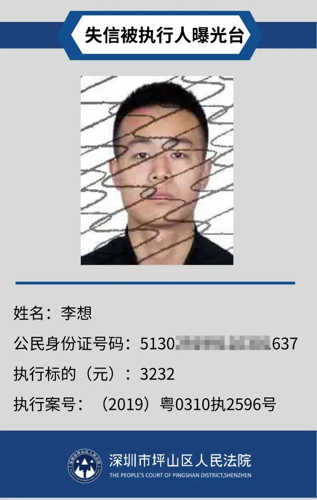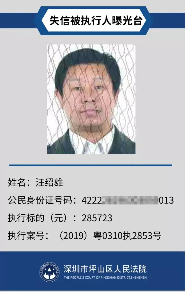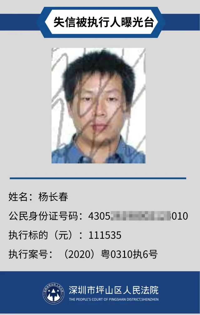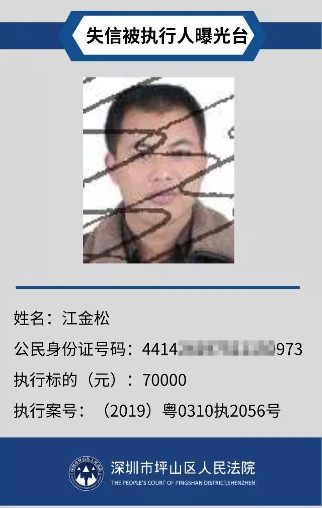 為督促被執(zhí)行人自覺履行生效法律文書確定的義務,推進社會誠信體系建設,深圳市坪山區(qū)人民法院根據《中華人民共和國民事訴訟法》第二百五十五條、《最高人民法院公布失信被執(zhí)行人名單信息若干規(guī)定》第一條和第七條之規(guī)定,現對31名失信被執(zhí)行人予以公布。名單信息根據案件結案情況及時更新,歡迎舉報失信被執(zhí)行人行蹤及財產線索,相關信息核實請聯系深圳市坪山區(qū)人民法院執(zhí)行局。