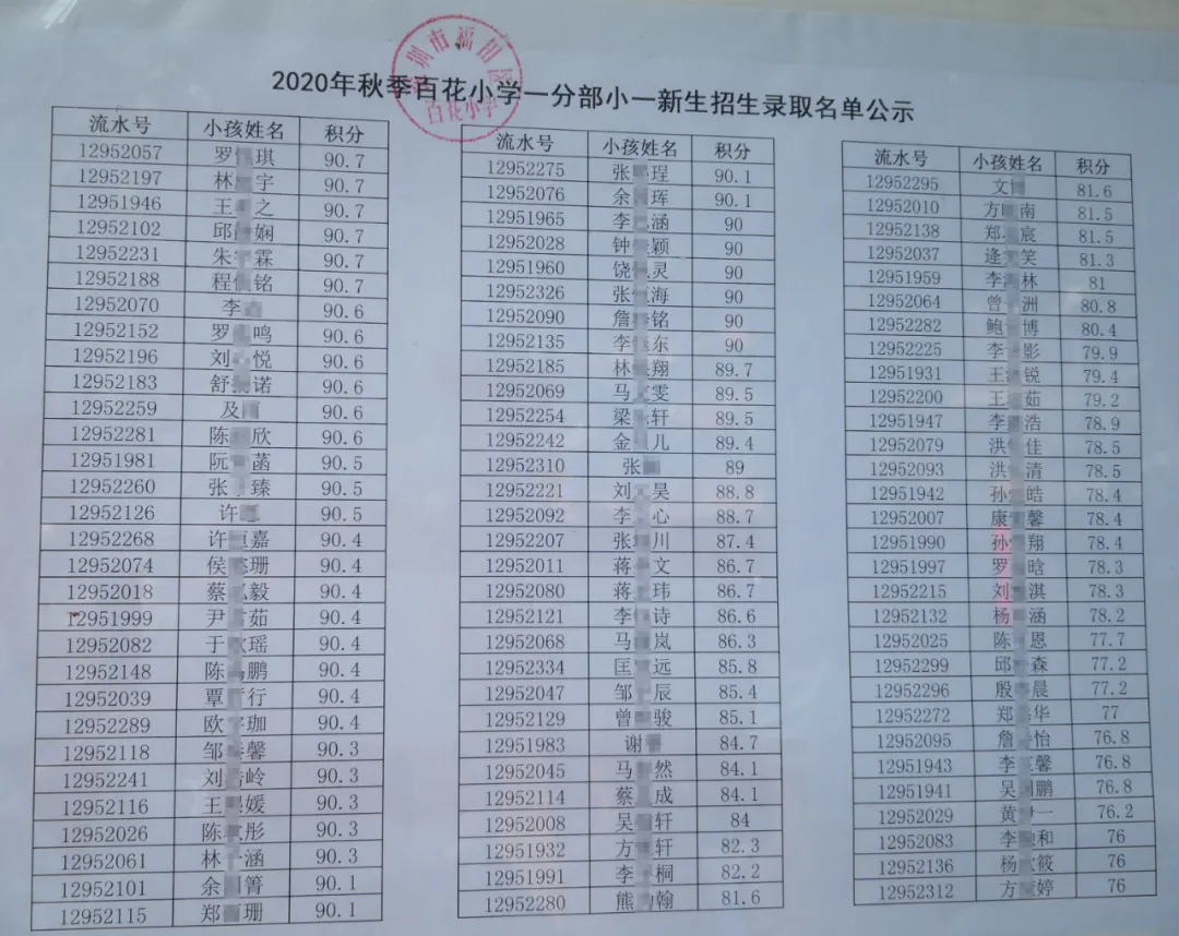 小一家長們關(guān)心的2020年公辦小一年級新生報名積分錄取名單今天開始放榜啦。