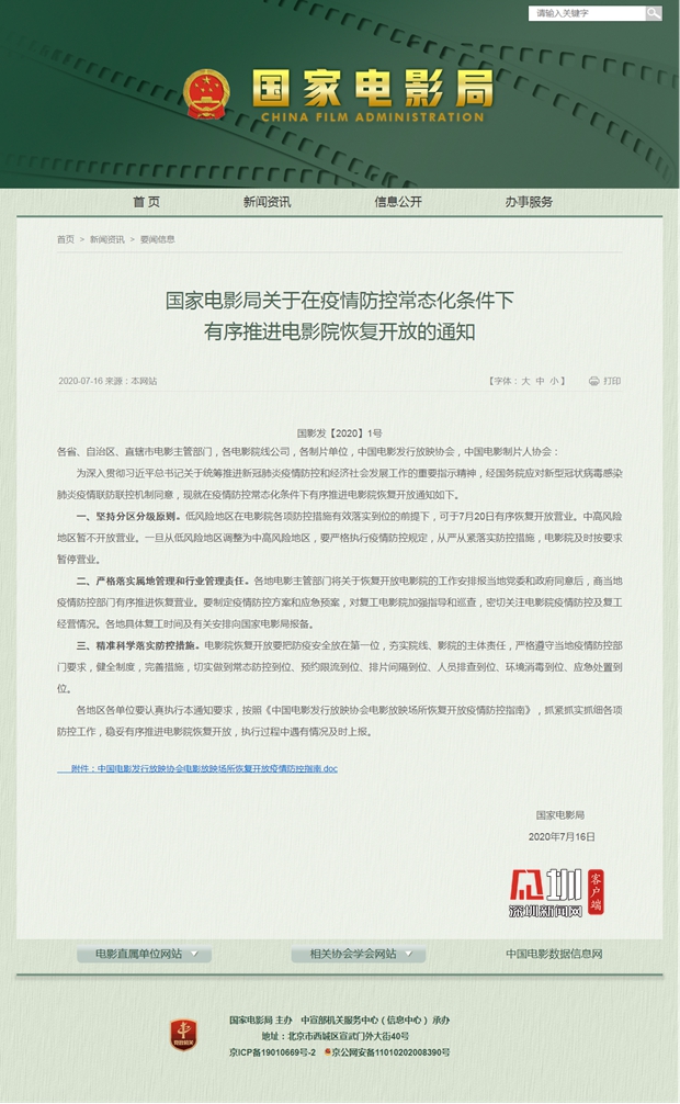 國家電影局關(guān)于在疫情防控常態(tài)化條件下