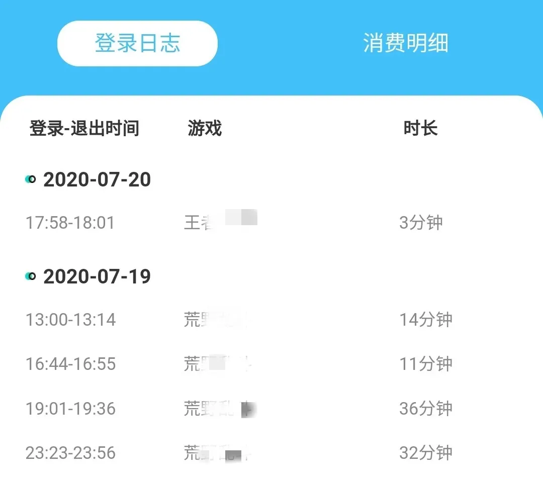 點(diǎn)擊進(jìn)入詳情頁,甚至還能看到最近7天的統(tǒng)計(jì)情況,總共玩多長時(shí)間,每天玩多長時(shí)間,每次登陸哪款游戲,登錄了多久,什么時(shí)候退出游戲……