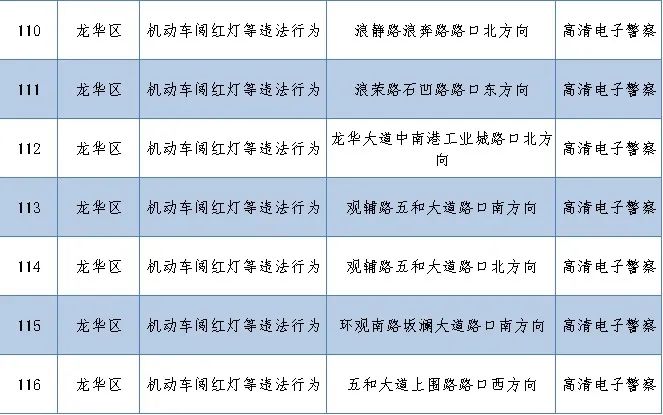 新增116套電子警察監(jiān)控設(shè)備,用于查處闖紅燈、逆行、進入導(dǎo)向車道變更車道等違法行為,分布在車流量較大的信號路口及路段。