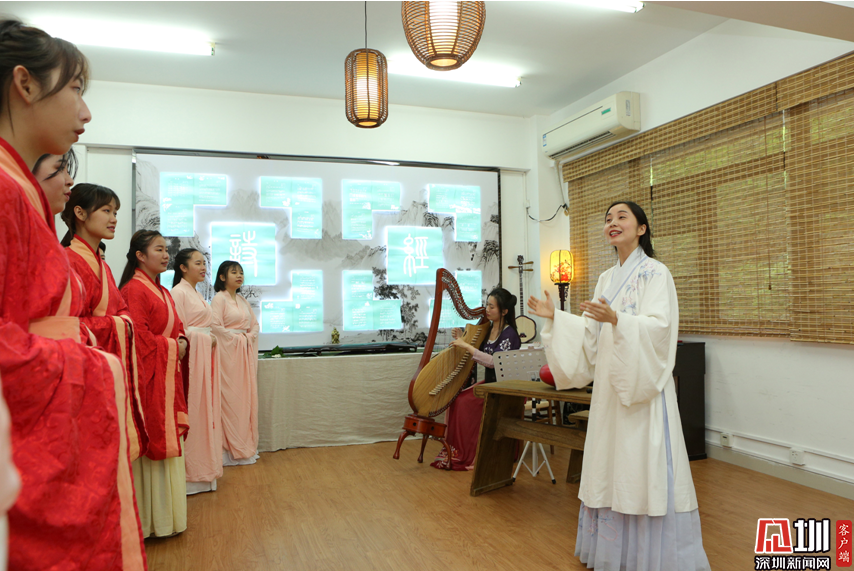 深信院師生在風(fēng)雅頌詩經(jīng)文化傳承基地演唱。