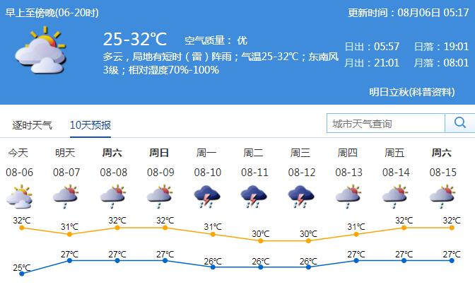 見圳客戶端·深圳新聞網(wǎng)2020年8月6日訊 近幾天的暴雨令深圳炎熱天氣有所緩解,8月6日起,暴雨將暫告一段落。據(jù)市氣象臺(tái)預(yù)測(cè),未來4天陽光增多,氣溫上升,天氣悶熱。其中,6日有(雷)陣雨,陽光增多,氣溫26℃~32℃;7日至9日多云間晴天,有短時(shí)陣雨,天氣悶熱;10日至12日降雨增多,有陣雨或雷陣雨,部分時(shí)間雨勢(shì)較大。