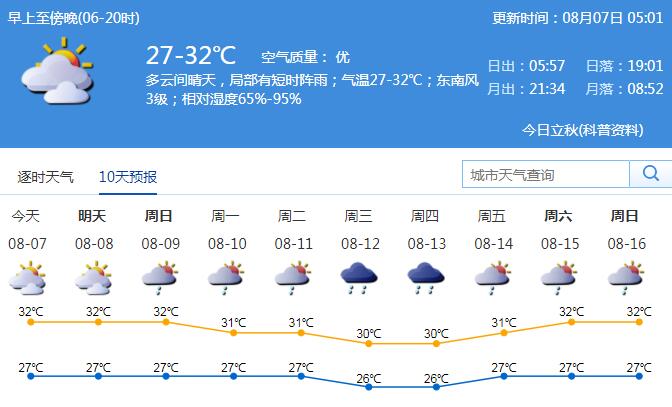 市氣象臺預(yù)測,7-9日多云,偶有短時陣雨;10-13日降雨增多,有陣雨或雷陣雨,部分時間雨勢較大。天氣漸趨悶熱,需注意防暑防曬;地質(zhì)災(zāi)害具有滯后性,需要遠離危險邊坡、河道和低洼地帶。