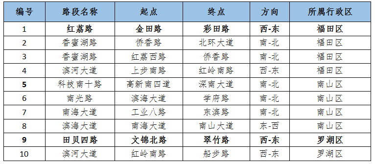預計臺風季工作日晚高峰時段十大易堵路段主要集中在福田、南山、羅湖區(qū),其中,福田區(qū)紅荔路(金田路-彩田路)、羅湖區(qū)田貝四路(文錦北路-翠竹路)等路段受降雨天氣影響較大,預計晚高峰時段路段通行時長較普通工作日多花費30%-60%,道路運行有所惡化。
