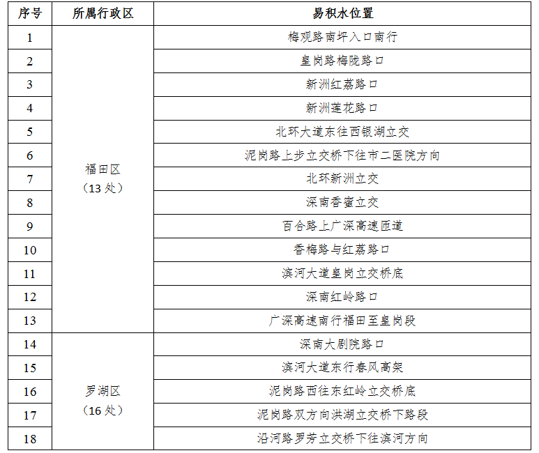 根據(jù)深圳市氣象局等權(quán)威部門發(fā)布的易積水路段匯總信息,深圳全市范圍暴雨天氣易積水路段如下,其中,東環(huán)一路、新洲路、文錦北路等路段周邊積水相對密集,請市民朋友小心留意,注意安全。