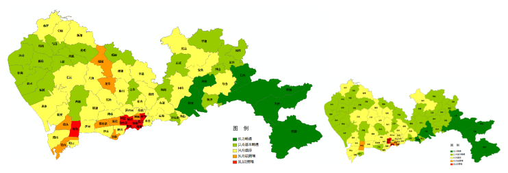 圖2 預計臺風季工作日(左)、普通工作日(右)早高峰全市主要街道交通運行狀態(tài)圖