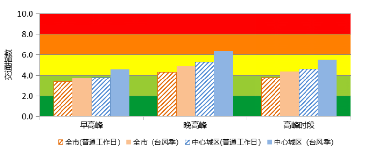 圖1 預計臺風季工作日全市及中心城區(qū)交通指數(shù)與普通工作日對比