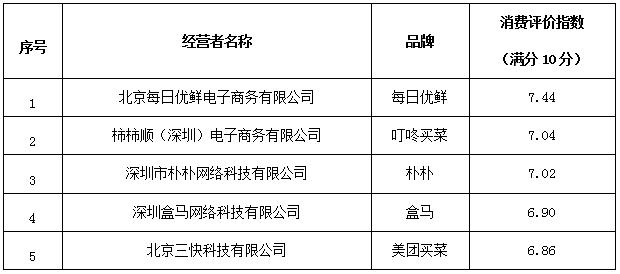發(fā)布深圳地區(qū)生鮮電商行業(yè)消費(fèi)評價指數(shù)排行榜