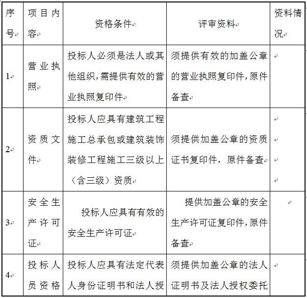 投標(biāo)報(bào)名資格審查指引表