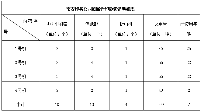 本項(xiàng)目為深圳報(bào)業(yè)集團(tuán)寶安印務(wù)整體搬遷印刷設(shè)備吊裝項(xiàng)目,搬遷設(shè)備為4臺(tái)高斯SSC印刷設(shè)備,施工區(qū)域包括:設(shè)備起拆點(diǎn)深圳市寶安區(qū)流塘路寶安日?qǐng)?bào)報(bào)社院內(nèi)、安裝點(diǎn)深圳市龍華區(qū)清麗路深圳報(bào)業(yè)集團(tuán)傳媒產(chǎn)業(yè)園備用線。印刷設(shè)備具體情況如下: