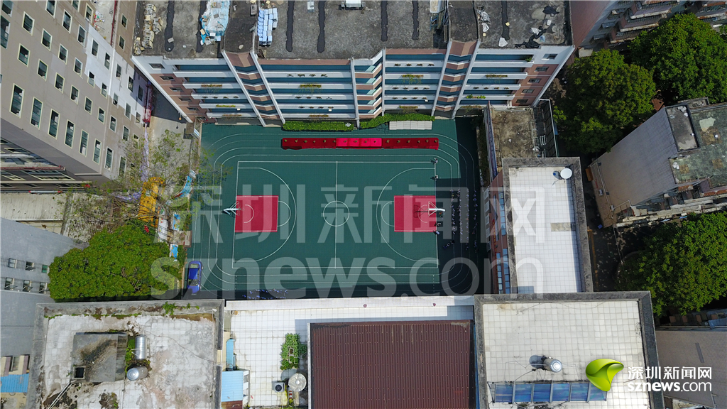 白石洲城中村內(nèi)的南山星河學(xué)?;@球場(chǎng)