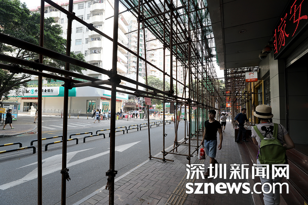 記者從白石洲地鐵站A出口出來,沿著白石洲(北區(qū))沙河街,穿過正在施工的鋼架,一步步走進深圳最大的城中村——白石洲