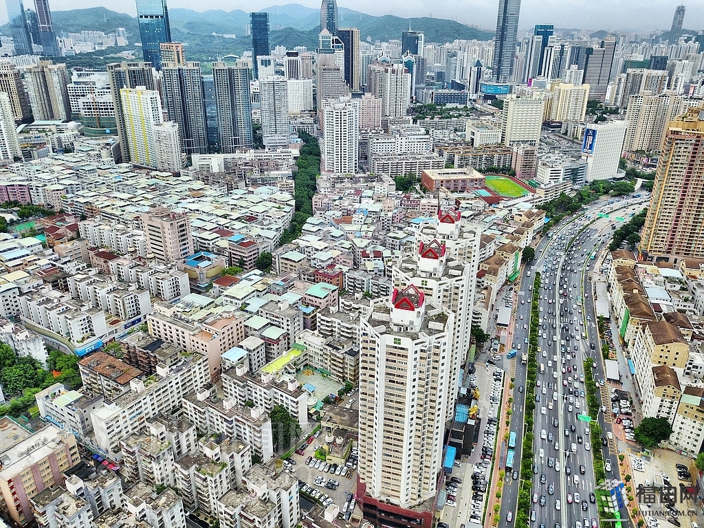 緊鄰福田村的濱河大道車水馬龍。