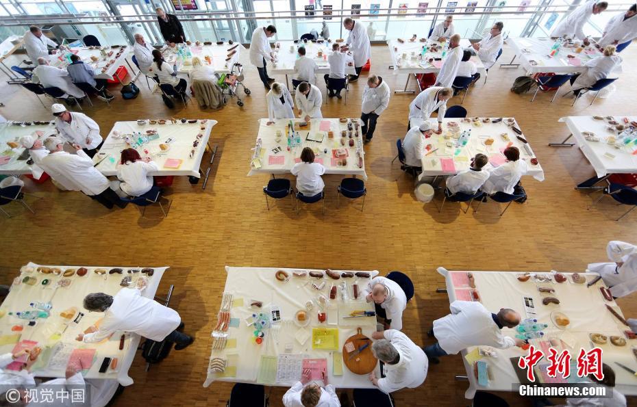 當(dāng)?shù)貢r(shí)間2018年2月28日,德國愛爾福特,當(dāng)?shù)嘏e辦香腸廚藝比賽。圖片來源:視覺中國