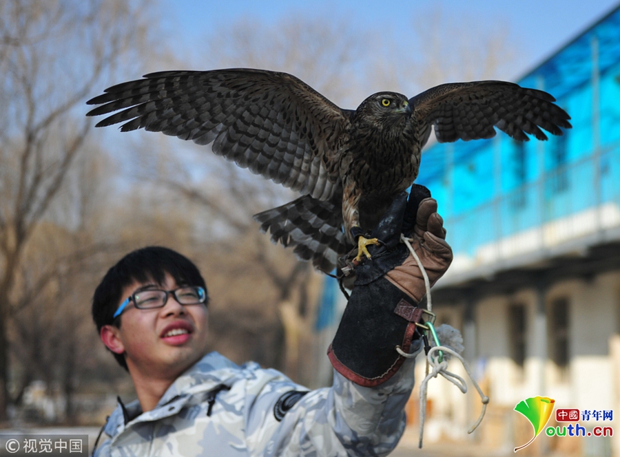 2018年3月11日,遼寧沈陽,蒼鷹等待放飛。當日,沈陽市林業(yè)局沈陽猛禽救助中心舉行2018年首次大型公益康復(fù)野放活動,這次活動放飛的都是經(jīng)過救助中心救助后康復(fù)的猛禽,禿鷲1只、蒼鷹3只,都是國家二級保護動物,省級保護動物烏鴉1只。