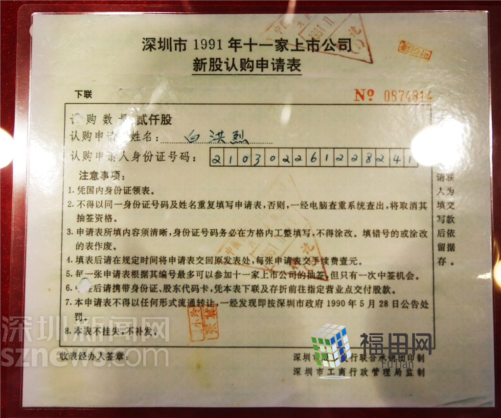深圳1991年11家上市公司新股認(rèn)購(gòu)申請(qǐng)表。