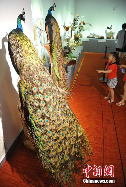 5月27日,各類飛禽走獸活靈活現(xiàn)地出現(xiàn)在民眾的眼前。正在福建博物院展出的第四屆中國動物標本大賽的257件惟妙惟肖的標本作品集中對外開放,讓民眾如進入“動物世界”。本次大賽匯集了全國標本制作企業(yè)、博物館、大專院校、研究所等60多家單位參加,標本涵蓋哺乳類、鳥類、爬行類、兩棲類、魚類等動物類群的皮張和骨骼標本。主辦方希望通過標本大賽,向公眾展現(xiàn)動物世界的美麗,宣傳生物多樣性和生態(tài)文明,借鑒吸收國際標本制作先進經(jīng)驗,提高中國野生動植物標本制作的整體水平。圖為大賽參賽的孔雀標本。中新社記者 張斌 攝