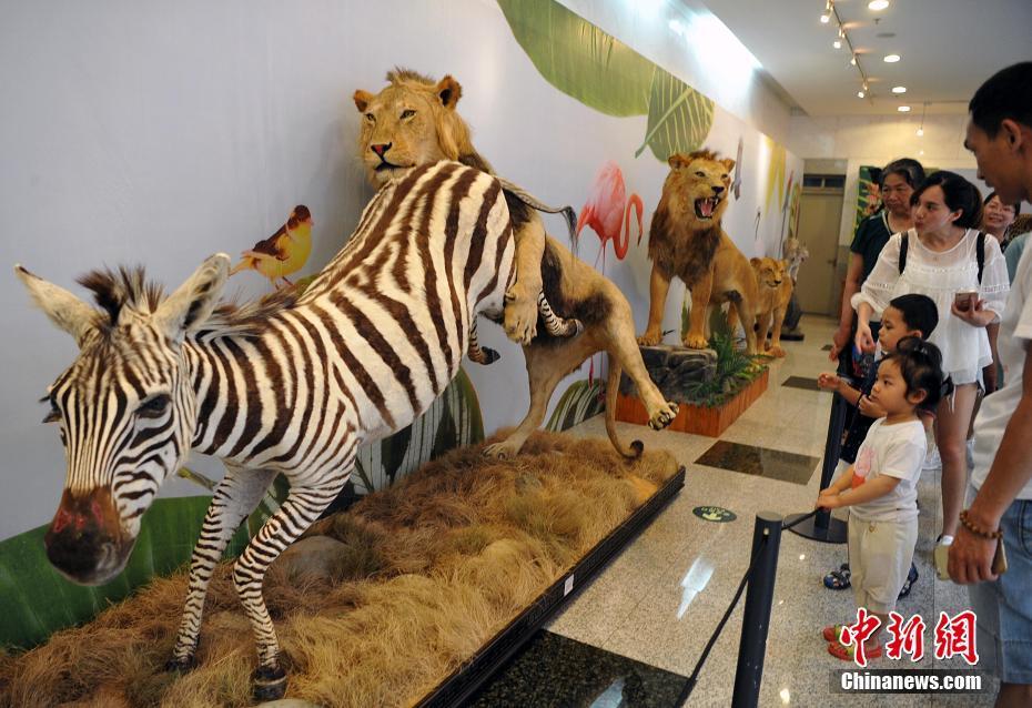 5月27日,各類(lèi)飛禽走獸活靈活現(xiàn)地出現(xiàn)在民眾的眼前。正在福建博物院展出的第四屆中國(guó)動(dòng)物標(biāo)本大賽的257件惟妙惟肖的標(biāo)本作品集中對(duì)外開(kāi)放,讓民眾如進(jìn)入“動(dòng)物世界”。本次大賽匯集了全國(guó)標(biāo)本制作企業(yè)、博物館、大專(zhuān)院校、研究所等60多家單位參加,標(biāo)本涵蓋哺乳類(lèi)、鳥(niǎo)類(lèi)、爬行類(lèi)、兩棲類(lèi)、魚(yú)類(lèi)等動(dòng)物類(lèi)群的皮張和骨骼標(biāo)本。主辦方希望通過(guò)標(biāo)本大賽,向公眾展現(xiàn)動(dòng)物世界的美麗,宣傳生物多樣性和生態(tài)文明,借鑒吸收國(guó)際標(biāo)本制作先進(jìn)經(jīng)驗(yàn),提高中國(guó)野生動(dòng)植物標(biāo)本制作的整體水平。圖為大賽參賽作品展吸引了許多民眾前來(lái)觀賞。中新社記者 張斌 攝