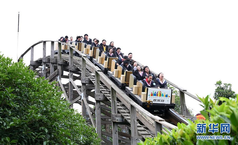 當(dāng)日,來自上海10余所高校的近80名應(yīng)屆大學(xué)本科畢業(yè)生來到上海歡樂谷,參加在這里舉行的過山車畢業(yè)禮活動。