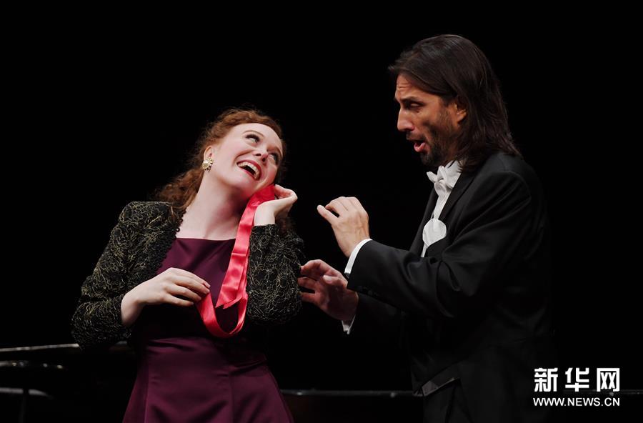 6月30日,在美國加利福尼亞州舊金山赫伯斯特劇院,歌唱家摩根·哈林頓(左)和安德烈亞·扎烏帕演唱《白毛女》選段《扎紅頭繩》。當日,著名華裔歌唱家田浩江偕6位參加過iSING!國際青年歌唱家藝術節(jié)的歌唱家舉辦“田浩江舊金山演唱會”。iSING!國際青年歌唱家藝術節(jié)創(chuàng)辦于2011年,集教育、訓練和演出于一體,為全球青年歌者提供學習和實踐的機會。在本場演唱會上,來自不同國家的藝術家們演唱中外經(jīng)典歌曲,為觀眾獻上一臺中西文化交融的聽覺盛宴。新華社記者吳曉凌攝