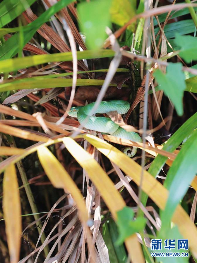這是7月19日在馬來西亞沙撈越州峇哥國家公園拍攝的蝮蛇。設立于1957年的峇哥國家公園坐落于馬來西亞沙撈越州,擁有豐富的野生動植物物種。新華社記者 朱煒 攝