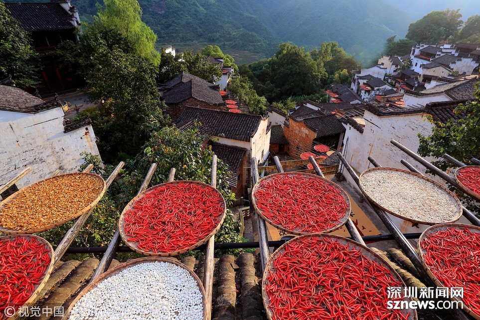 2018年8月7日,江西婺源縣篁嶺古村,壯觀的“曬秋”場(chǎng)景。