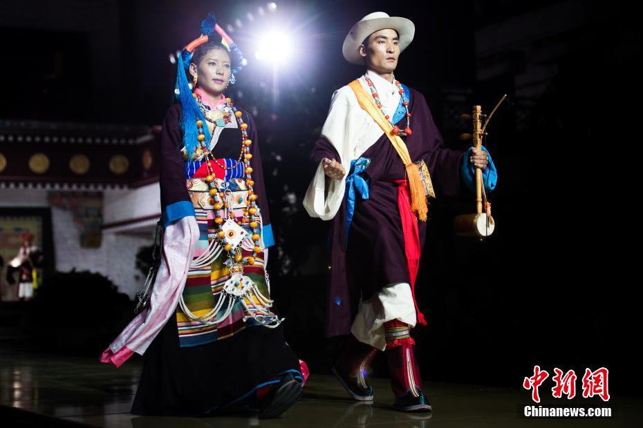 8月12日晚,由西藏職業(yè)技術(shù)學(xué)院與北京服裝學(xué)院共同打造的“凈美雪頓·美好生活”西藏民族服裝與服飾展演活動在拉薩舉行?,F(xiàn)場通過傳統(tǒng)篇、現(xiàn)代篇與未來篇三個篇章,展演了藏族傳統(tǒng)服裝26套,設(shè)計創(chuàng)新服裝58套,共計84套服裝。圖為模特展示藏族傳統(tǒng)服飾。中新社記者何蓬磊 攝