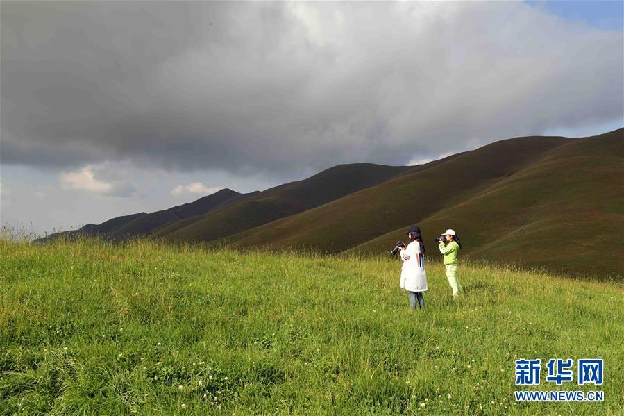 8月27日,游客在大海草山拍攝美景。新華社記者楊宗友 攝