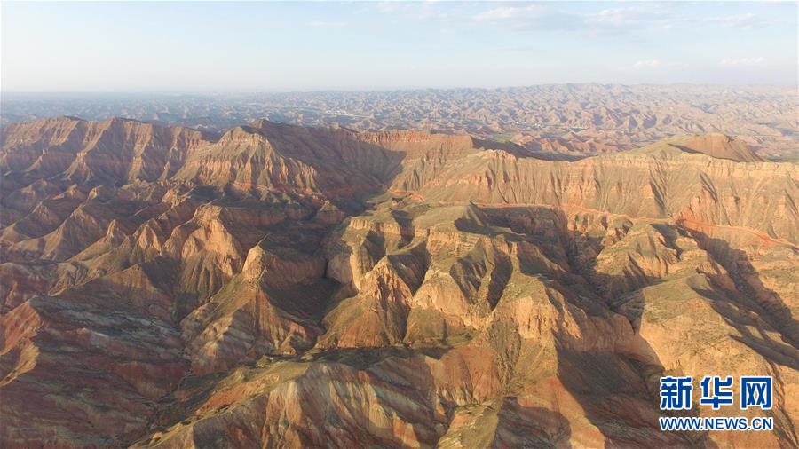這是7月15日拍攝的蘭州樹屏丹霞地貌。蘭州樹屏丹霞國家地質(zhì)公園位于甘肅省蘭州市永登縣咸水河流域及其毗鄰地區(qū),分布在蘭州市所屬的永登縣、皋蘭縣、西固區(qū)、安寧區(qū),主體位于永登縣樹屏鎮(zhèn)、苦水鎮(zhèn)和西固區(qū)河口鎮(zhèn)。其主體地質(zhì)遺跡為丹霞和彩色丘陵,登高遠眺,綿延起伏,絢爛瑰麗,如同大自然創(chuàng)作的壯美油畫。新華社記者陳曄華 攝