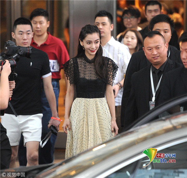 趙麗穎荷葉邊連衣裙亮相 甜美迷人