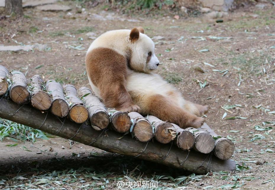秦嶺大熊貓野化培訓(xùn)佛坪基地,7歲的棕色大熊貓七仔是目前全世界唯一能看到的棕色大熊貓活體。今年是它在基地過的第二個冬天,每逢下雪,七仔就興奮地滿園子跑,變身“雪花熊”。央視記者李志王志杰 圖片來源:央視新聞官方微博
