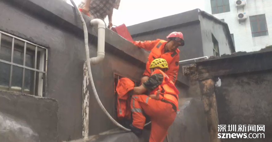 大鵬新區(qū)南澳東山碼頭籃球場旁邊樓房三樓,受臺風影響水位上升,現(xiàn)場3人被困,大鵬直屬中隊緊急出動1輛水陸兩用車,1輛消防車,6名指戰(zhàn)員趕赴現(xiàn)場。經過1個多小時的救援,于13點26分成功解救2名成年人、一名小孩。