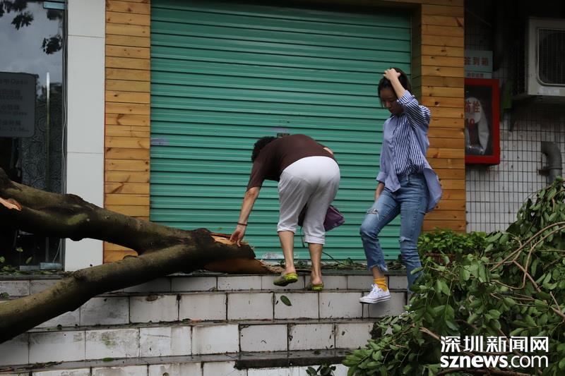 2018年9月17日10點03分,商報東二路,兩位市民走過,一邊是倒塌的樹木。(攝影:楊浩翰)