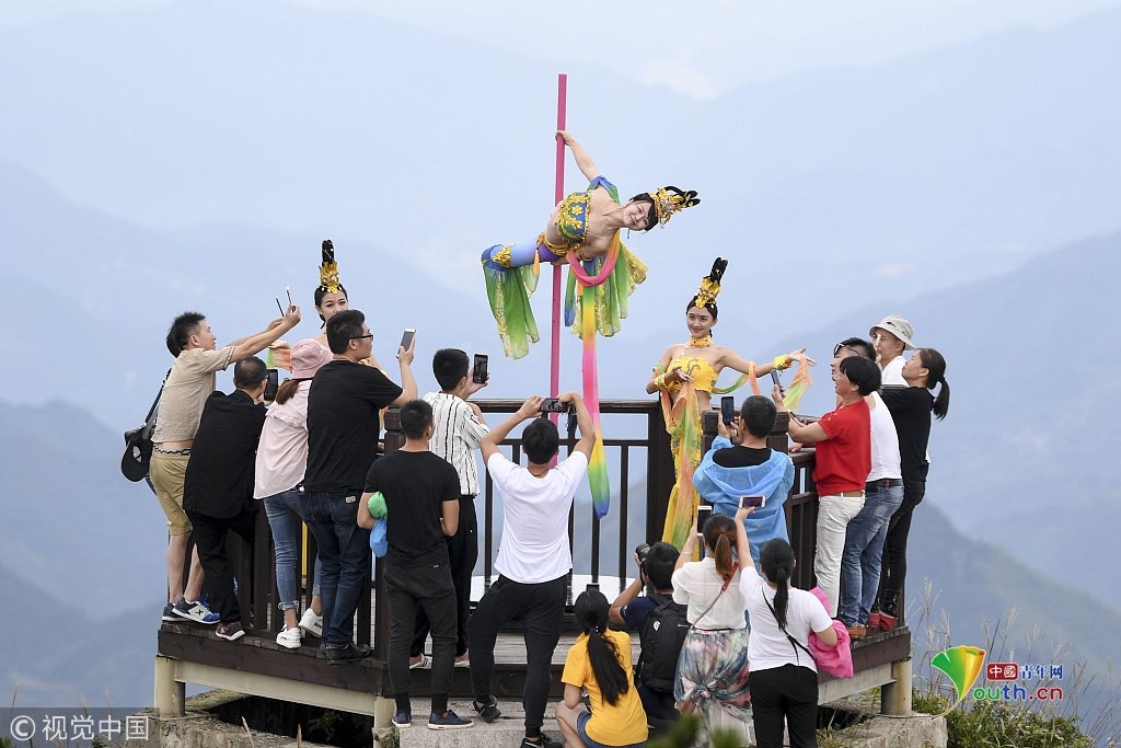 長三角第一高峰上演高空鋼管舞 舞者演繹“嫦娥奔月”