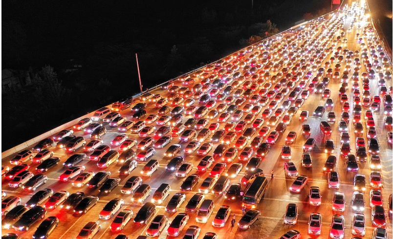 航拍鄭州中秋返程高峰 堵車數(shù)公里宛 ...