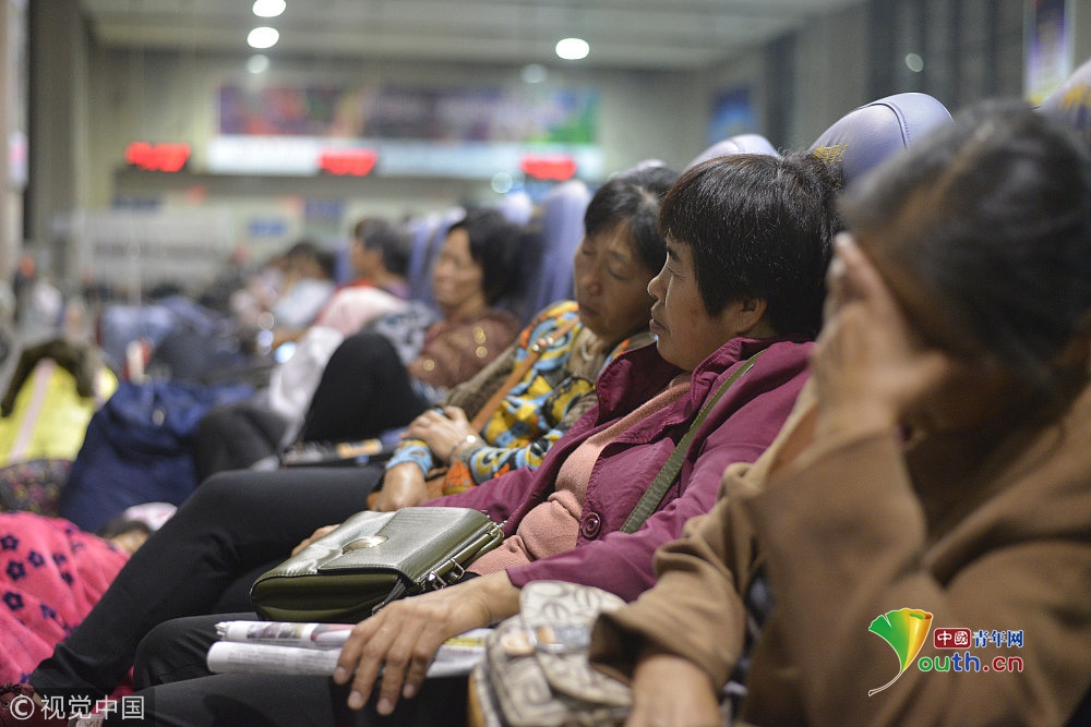 2018年9月15日,在鄭州火車(chē)站候車(chē)大廳,來(lái)自周口西華縣農(nóng)村的數(shù)百名采棉工,為趕早上4點(diǎn)50分的火車(chē),在火車(chē)室打地鋪休息。