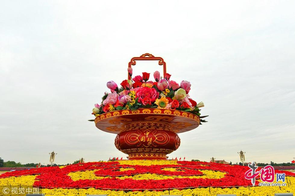 2014年國慶花卉布置中首次使用了3D打印技術(shù),花壇造型更加豐富逼真。大花籃里的“花材”主要選用牡丹、月季、玉蘭、芙蓉、向日葵等,這些“花材”,里面都是金屬結(jié)構(gòu),外面是經(jīng)過處理的織物。其中牡丹最大,直徑3.2米,花頭單重300公斤,花籃里共有八九枝這樣的大牡丹,是花籃中的“主花”。 花籃中還有月季、玉蘭、芙蓉等傳統(tǒng)花材的模型,也有部分鮮花。整個花籃完成后,直徑50米,籃盤直徑15米,頂高15米,非常有氣勢。花籃籃體增加了中國結(jié)圖案,四周都嵌有“中國夢”字樣,均為燈箱效果,突出強調(diào)祝福祖國、實現(xiàn)中國夢的美好意愿。
