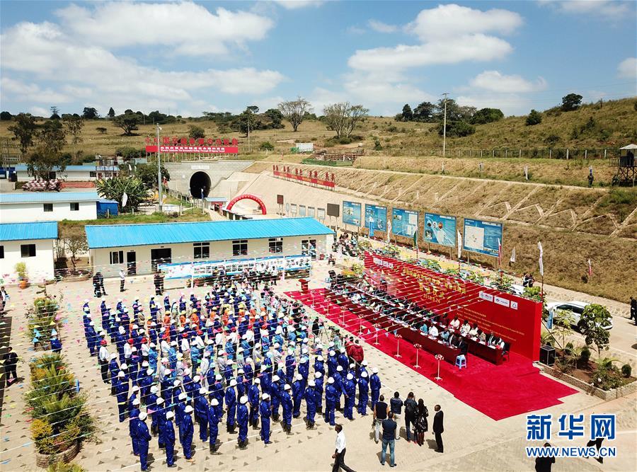 這是9月24日拍攝的內羅畢-馬拉巴標軌鐵路(內馬鐵路)項目第一期恩貢隧道貫通儀式現場(航拍照片)。 由中國交通建設股份有限公司承建的內羅畢-馬拉巴標軌鐵路(內馬鐵路)項目第一期恩貢隧道24日實現貫通。據悉,恩貢隧道全長約4.5公里,是目前東非地區(qū)最長的鐵路隧道。它的建成標志著內馬鐵路項目第一期取得了突破性進展。 新華社記者王騰攝