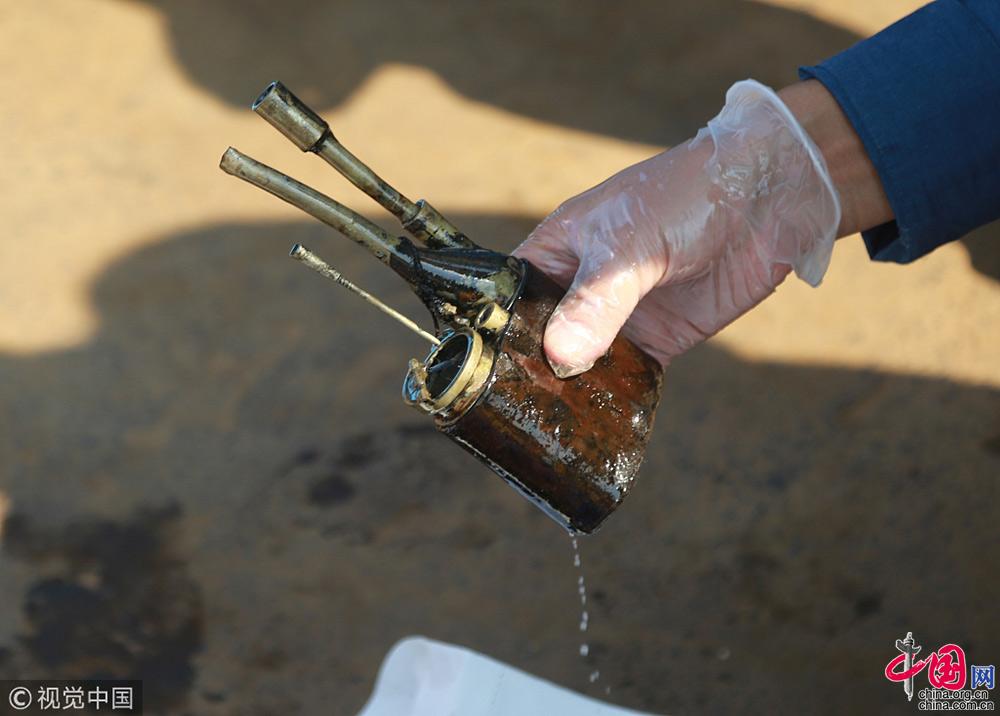 2018年9月25日,遼寧大連,在莊河黑島海域甲午戰(zhàn)爭“經(jīng)遠(yuǎn)艦”遺址出水的各類遺物標(biāo)本。視覺中國